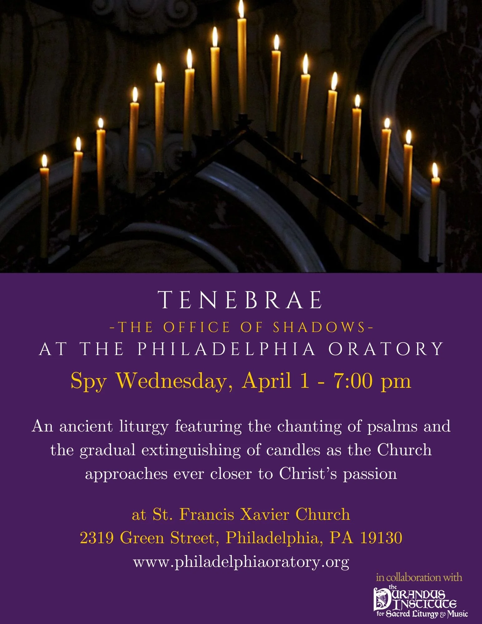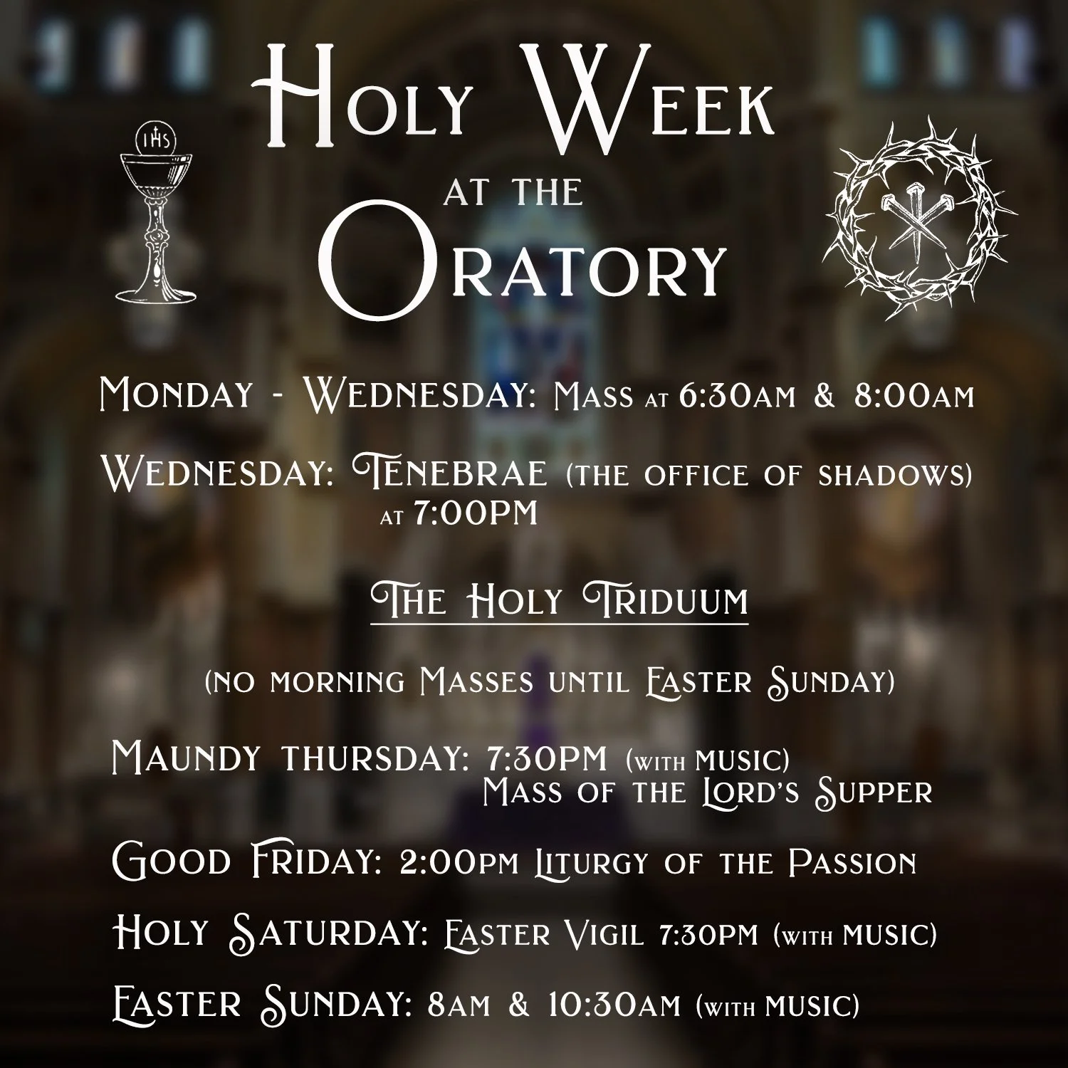 You are invited to join the Oratorian Community for prayer before the Blessed Sacrament in the church each weekday afternoon from 5:10 to 6:00 PM. This quiet time of prayer is an opportunity to reflect on the Gospel reading for the next day, to join together in intercessory prayer and to conclude with a litany and the proper anthem to Our Lady. All are welcome.